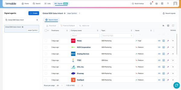Firmable’s search intent includes company-level surge ratings, weekly trend indicators, ICP-aligned topic insights, net new demand discovery, and direct CRM activation. It’s available now for Firmable customers.