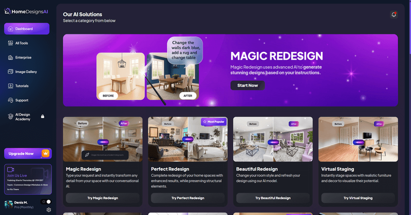 About HomeDesignsAI: HomeDesignsAI is an all-in-one generative AI platform for interior, exterior, and garden visualization. Offering over 160 distinct design styles, the platform provides homeowners, real estate agents, landscapers, architects and developers with the fastest, most accurate way to reimagine any property through advanced machine learning and spatial computing concepts.