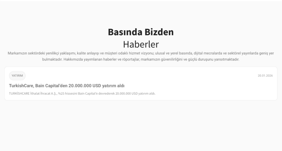 TurkishCare has secured a USD 20 million strategic investment from Bain Capital in exchange for a 25% equity stake, supporting the company’s plans to expand production capacity, strengthen supply chains, and accelerate international market growth.